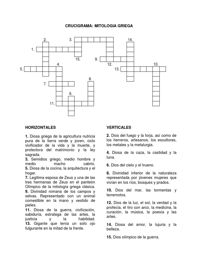Crucigrama Mitologia Griega Pdf Mitologia Griega Zeus