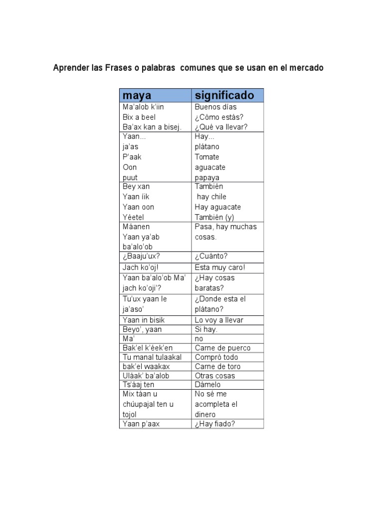 Vocabulario Maya Para Compras Pdf