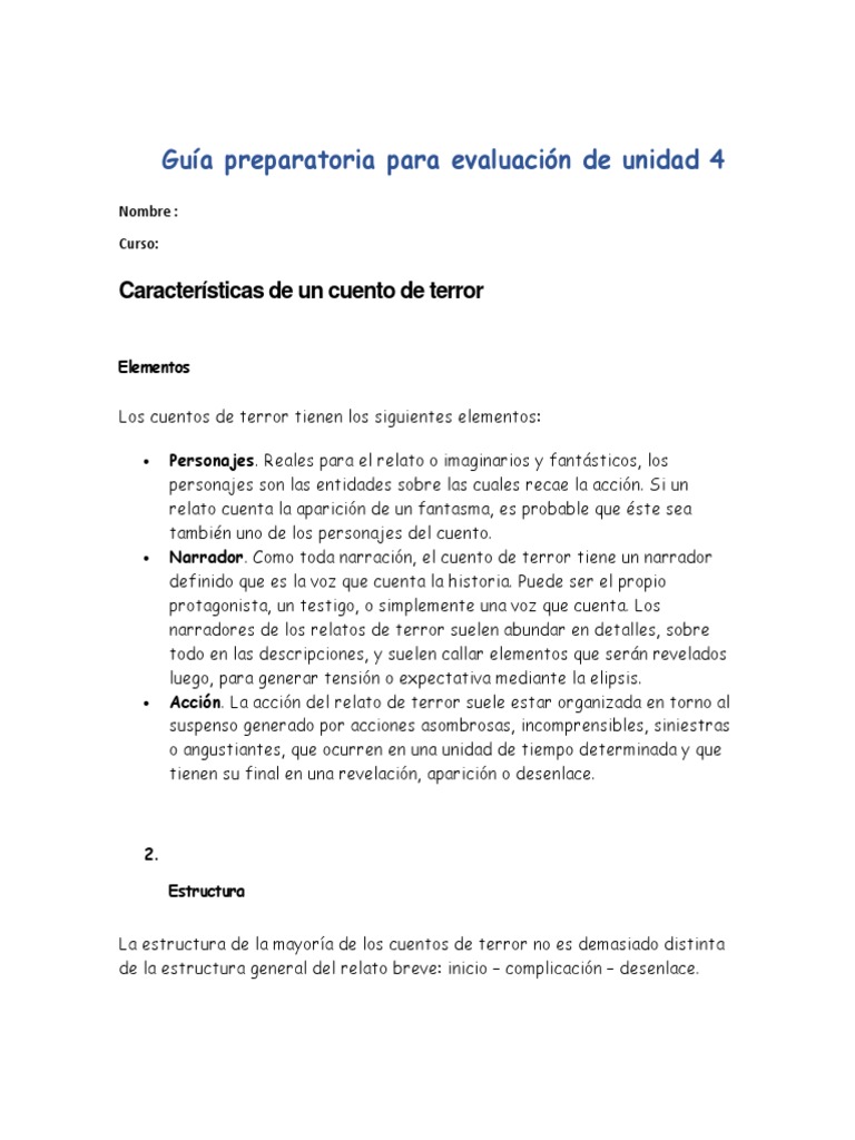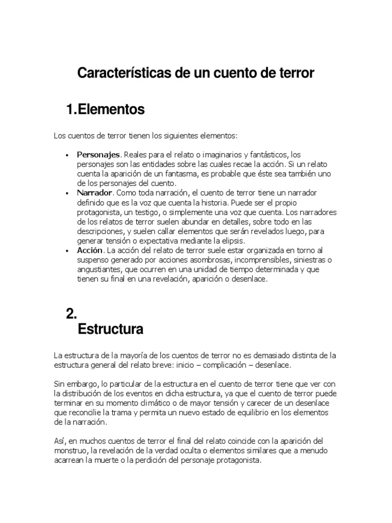Caracteristicas De Un Cuento De Terror Pdf Narrativa