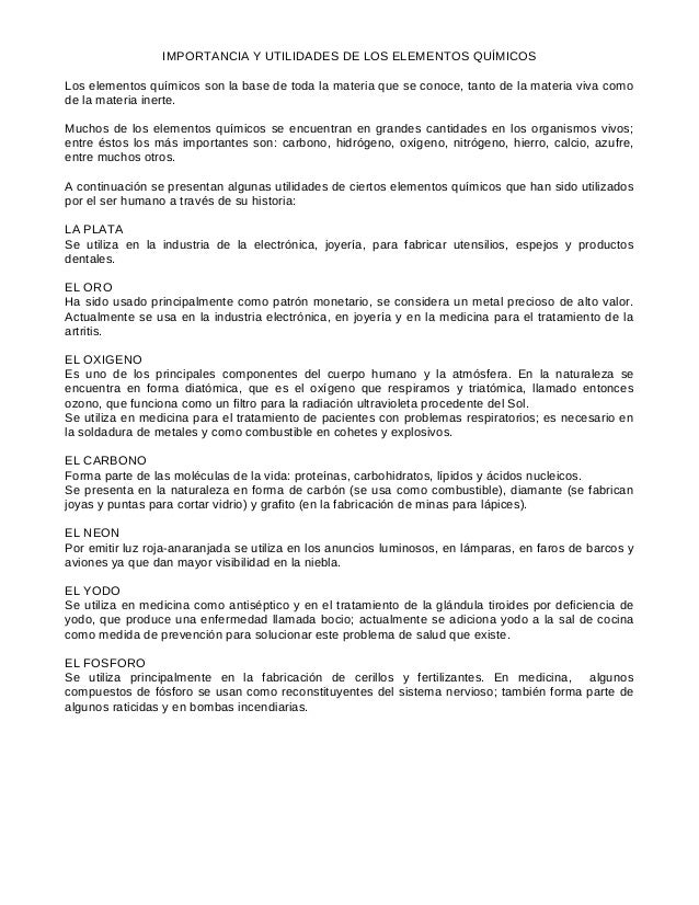 Importancia Y Utilidades De Los Elementos Quimicos