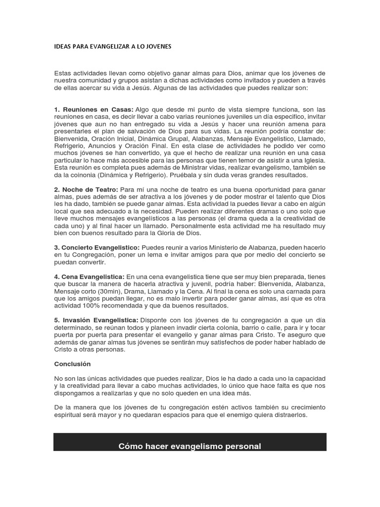 Ideas Para Evangelizar A Lo Jovenes Pdf Jesus Cristo Titulo
